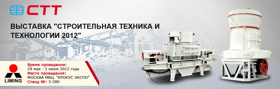 ЗАО Лимин участвует в выставке СТТ 2012- 13-ой Международной специализированной выставке "Строительная Техника и Технологии'2012", которая проводится с 29 мая по 02 июня 2012 года в Москве России. На выставке выставим наше новейшее дробильное оборудование. Сердечно приглашаем Вас посещать наш стенд. Время проведения: 29 мая - 2 июня 2012 года Наш стенд №: 3-280 Моб.: +86 158 3719 9668 Иван